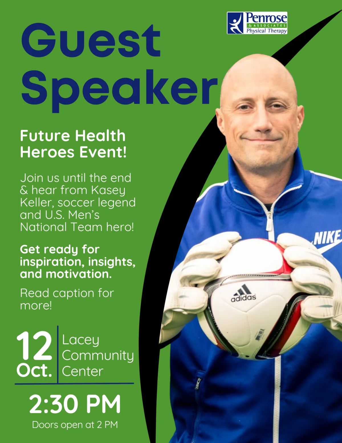 This event will also feature several Health Heroes on the panel, including Kasey Keller, former U.S. Men’s National Soccer Team goalkeeper, who will share his journey of maintaining peak performance and staying active!